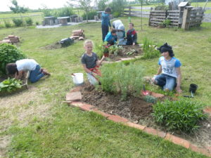 Dans ce jardin des enfants, on trouve tous les légumes traditionnels : pommes de terre, tomates, courgettes, aubergines, salades, pastèques, pâtissons… que l’on fait pousser le plus naturellement possible sans produits chimiques pour préserver la biodiversité. Magalie, experte et passionnée, dirige tout ce petit monde qu’elle laisse faire mais surveille du coin de l’œil. Les résultats sont là. Les enfants sont ravis, ils peuvent exercer ensuite et donner des conseils à leurs parents pour leur propre jardin. Ce magnifique jardin est à voir, belle idée de l’école, de la municipalité et des bénévoles pour la mise en place initiale, et… belle leçon de chose pour les enfants. À noter un poulailler avec deux poules que les enfants bichonnent et dont ils récupèrent les œufs à tour de rôle. L’an dernier, le jury du concours avait été séduit d’emblée par la beauté de ce jardin