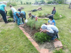 Avec le retour du beau temps, les enfants de l’école ont repris le chemin de leur jardin situé juste à côté des classes. Il faut dire qu’ils sont très motivés, ayant été primés l’an dernier au concours du réseau des jardiniers du Parc du Haut Languedoc. Nous avons suivi les CE et CM un vendredi après-midi (les petits opérant le mardi ). D’abord récupération des petits outils pour planter, biner, arroser, terreau… Ensuite tout le monde est à son poste et on voit bien que chacun sait ce qu’il a à faire.